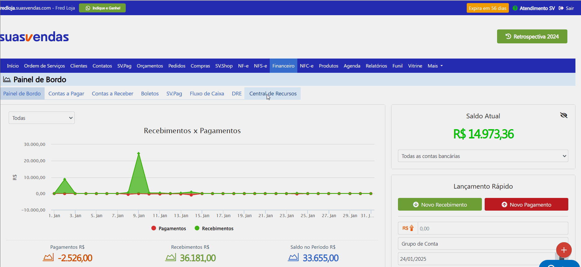 - Clique no submenu Central de Recursos > depois clique no menu Fornecedores;