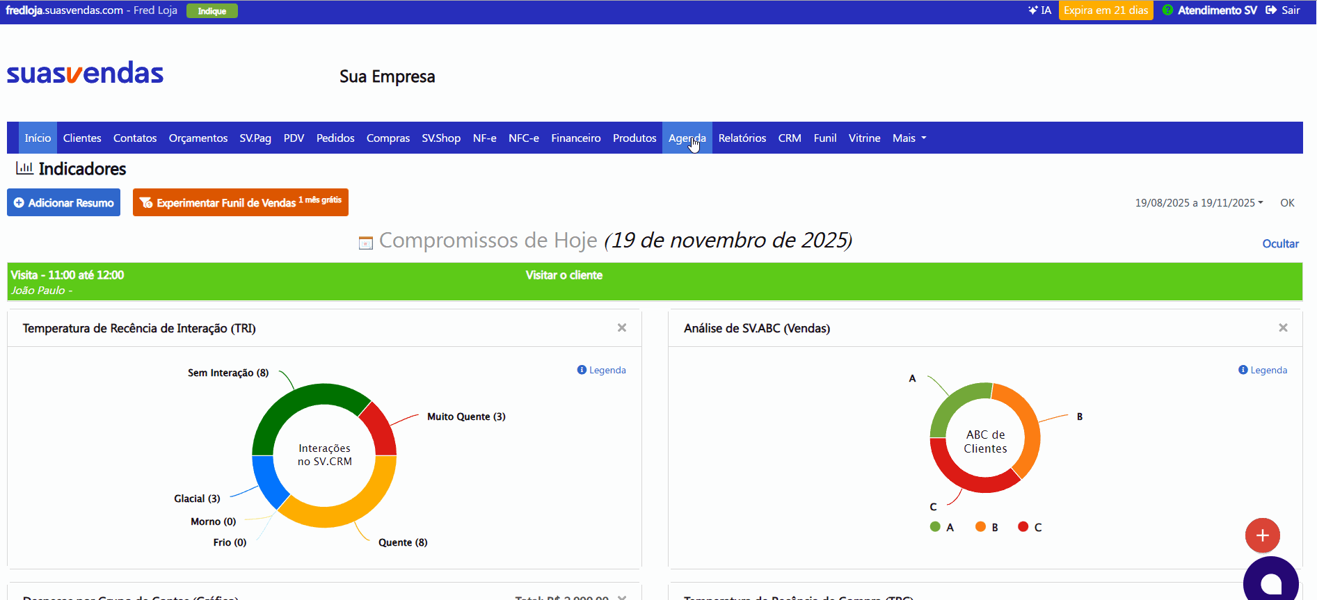 Agora no SuasVendas é possível identificar de forma rápida os Status dos compromissos da agenda, isso por meio da página principal do calendário ou do detalhar do compromisso.